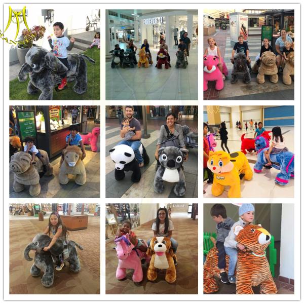 | Material: The material of our animal rides are black paint steel tube frame (external diameter: 25mm,thickness:2mm ) and fireproof animal design plush cover. |